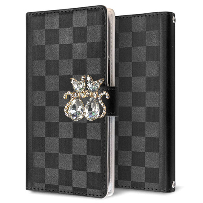 らくらくスマートフォン me F-03K docomo サイレントキャット プリント手帳型ケース 耐衝撃