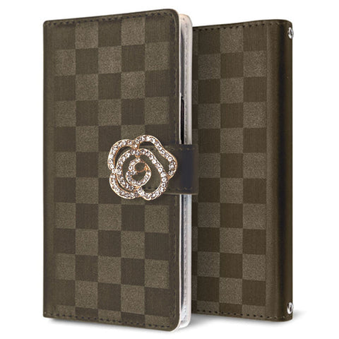 らくらくスマートフォン me F-03K docomo スマホケース 手帳型 Rose&ラインストーンデコバックル 耐衝撃