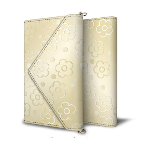 手帳型とも違う三つ折りタイプのレター型でオシャレなスマホケース。女性にうれしいミラー付き。