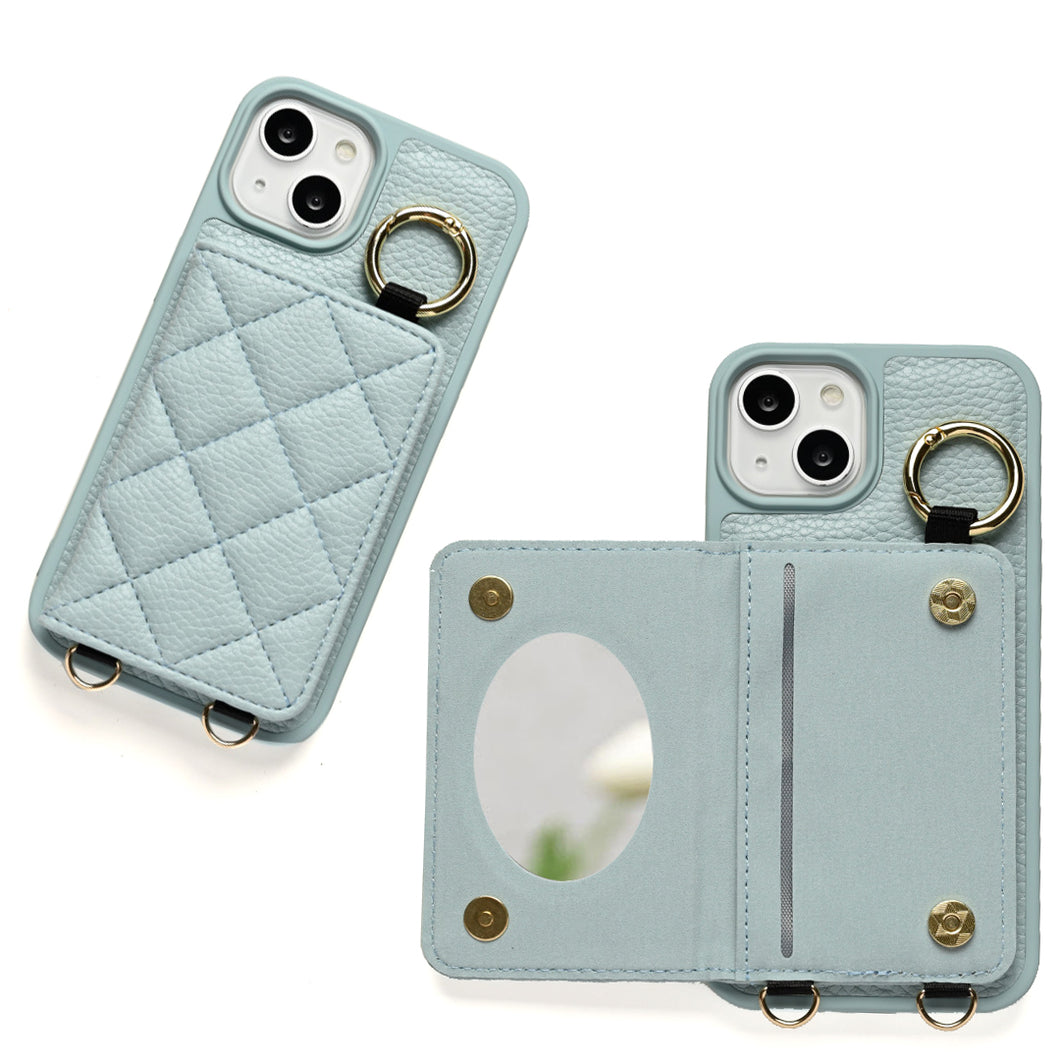 iPhone13 Pro Max キルティング カラー リアケース 2つ折りカードケース ミラー付き