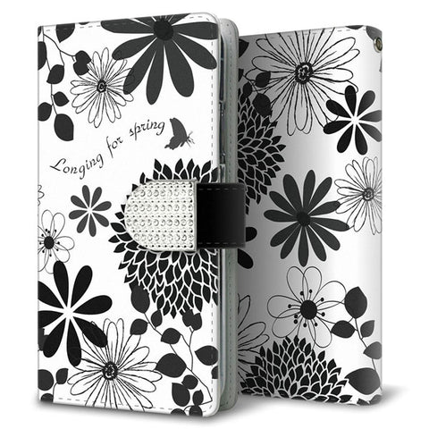あんしんスマホ KY-51B docomo モノトーンフラワーキラキラバックル 手帳型ケース 耐衝撃