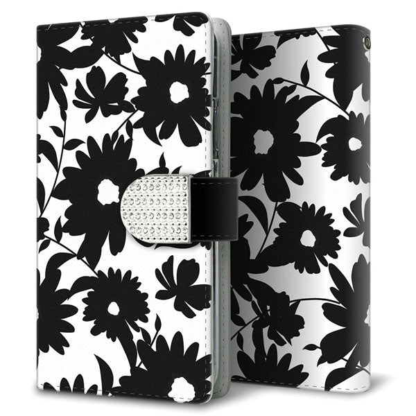 OPPO A5 5G OPG06 au モノトーンフラワーキラキラバックル 手帳型ケース 耐衝撃