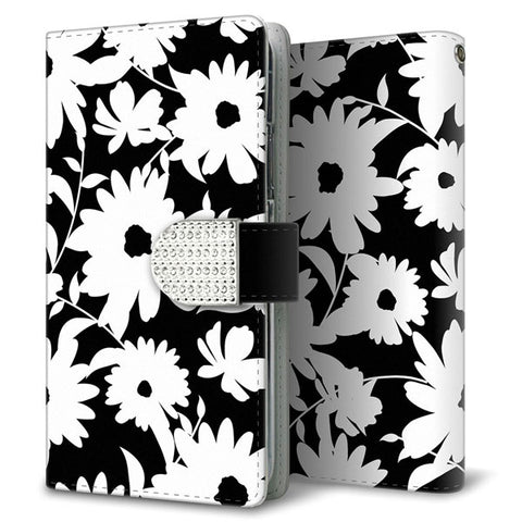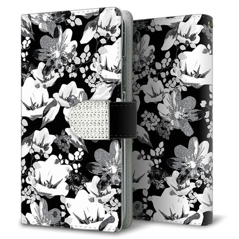 AQUOS sense10 SH-53F docomo モノトーンフラワーキラキラバックル 手帳型ケース 耐衝撃