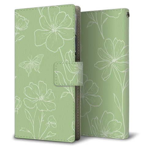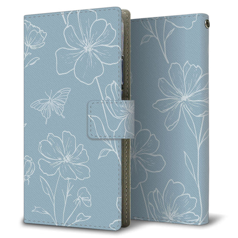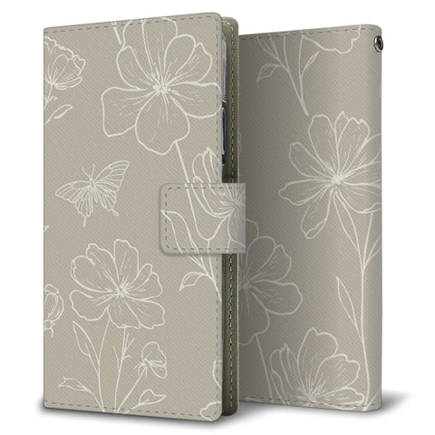 AQUOS R compact 701SH SoftBank 花のスケッチ 大人かわいい プリント手帳型ケース 耐衝撃