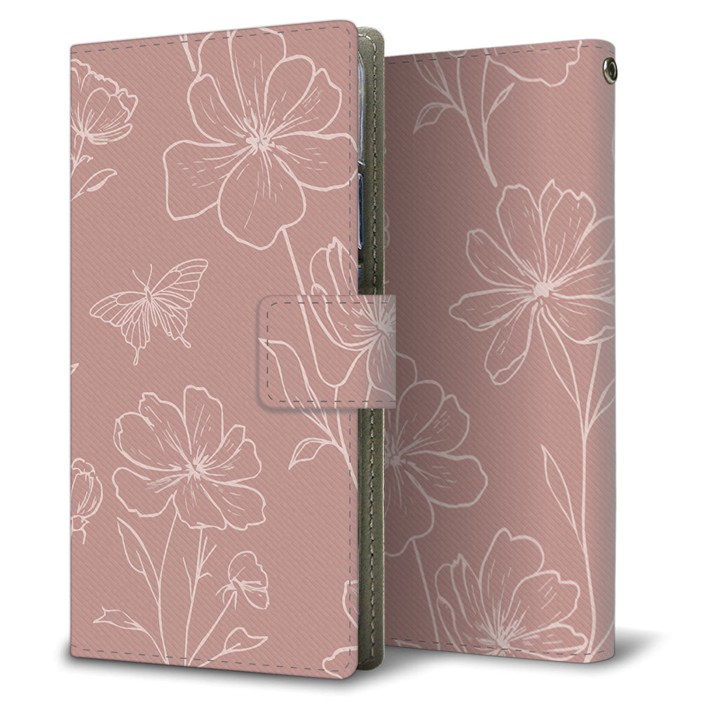 arrows Alpha F-51F docomo 花のスケッチ 大人かわいい プリント手帳型ケース 耐衝撃