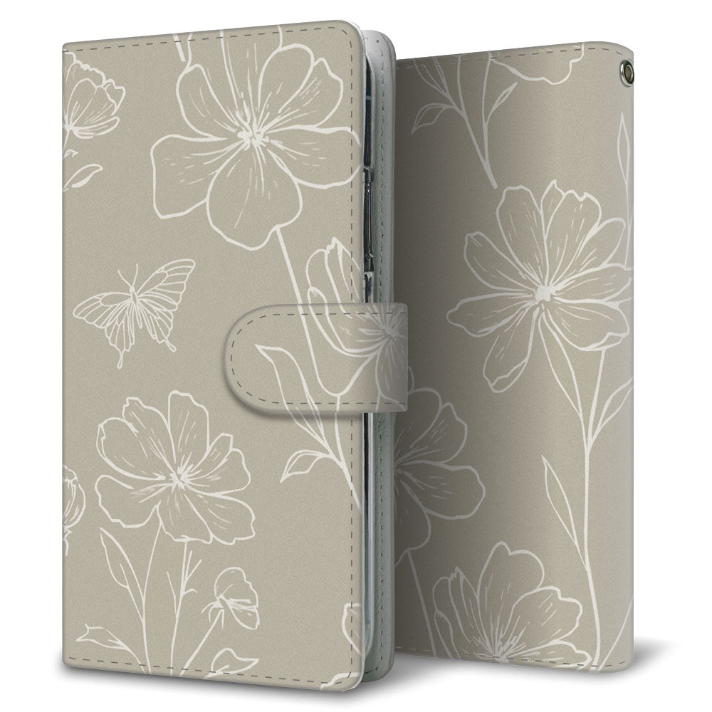 Xperia 5 V SOG12 au 花のスケッチ 大人かわいい プリント手帳型ケース 耐衝撃