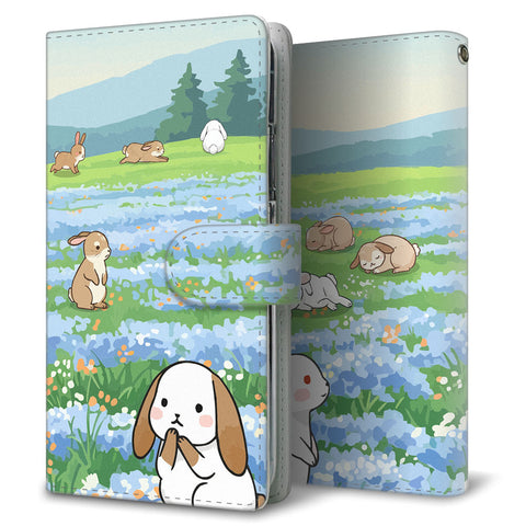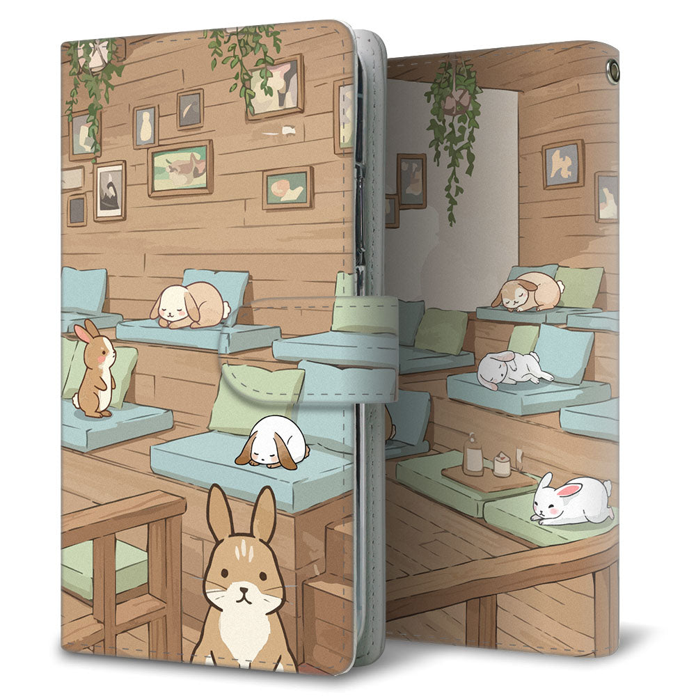 Android One S10 Y!mobile ウサギとかわいい時間 プリント手帳型ケース 耐衝撃