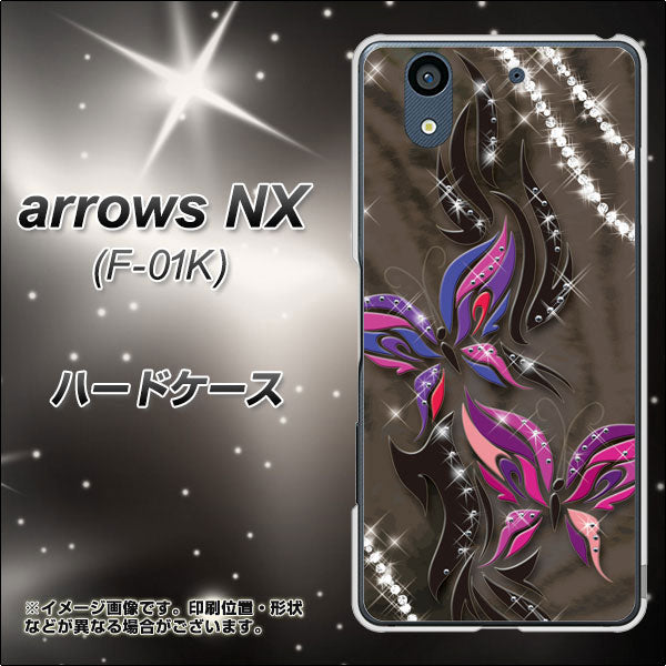 docomo アローズ NX F-01K 高画質仕上げ 背面印刷 ハードケース【1164 キラめくストーンと蝶】