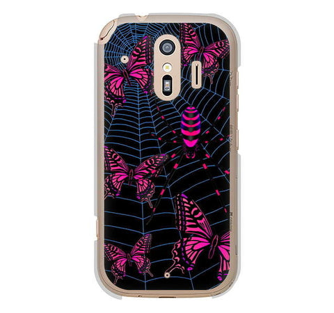 らくらくスマートフォン me F-01L docomo 高画質仕上げ 背面印刷 ハードケース むかいあぐる 蜘蛛の巣に舞う蝶