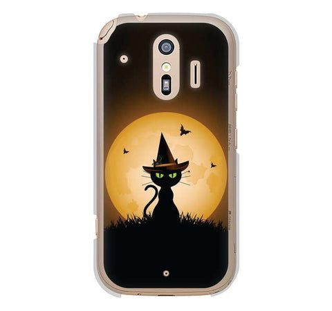 らくらくスマートフォン me F-01L docomo 高画質仕上げ 背面印刷 ハードケース 夜とネコ