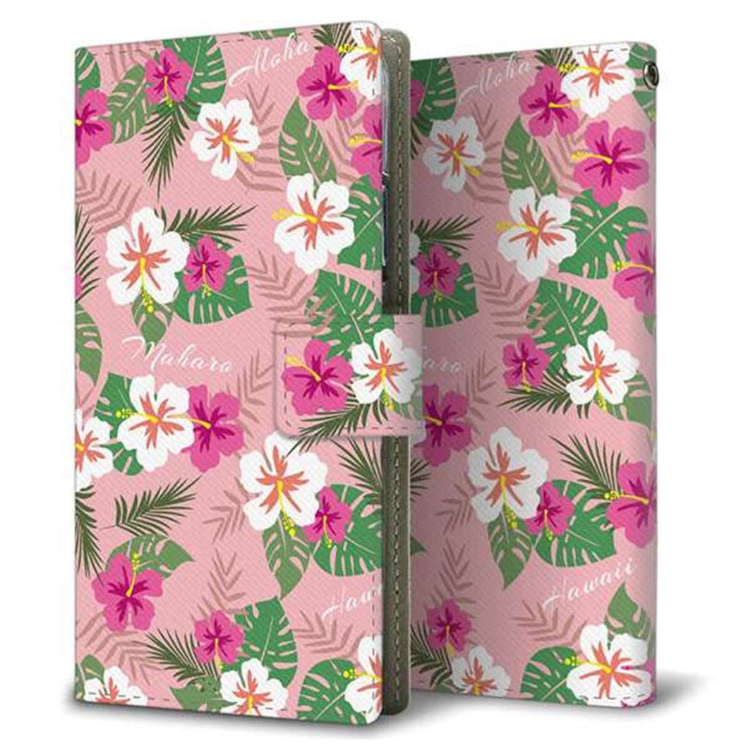 docomo アローズNX F-02H 画質仕上げ プリント手帳型ケース(薄型スリム)【SC882 ハワイアンアロハレトロ(ピンク)】