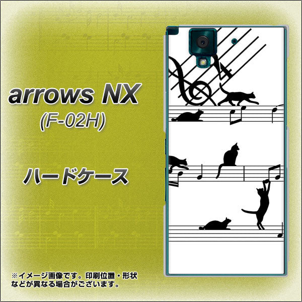 docomo アローズNX F-02H 高画質仕上げ 背面印刷 ハードケース【1112 音符とじゃれるネコ2】