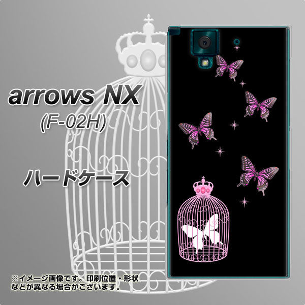 docomo アローズNX F-02H 高画質仕上げ 背面印刷 ハードケース【AG811 蝶の王冠鳥かご(黒×ピンク)】