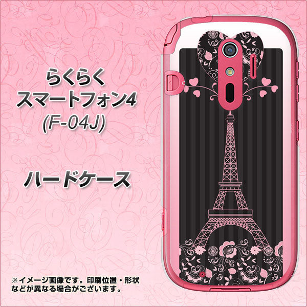 docomo らくらくスマートフォン4 F-04J 高画質仕上げ 背面印刷 ハードケース【469 ピンクのエッフェル塔】