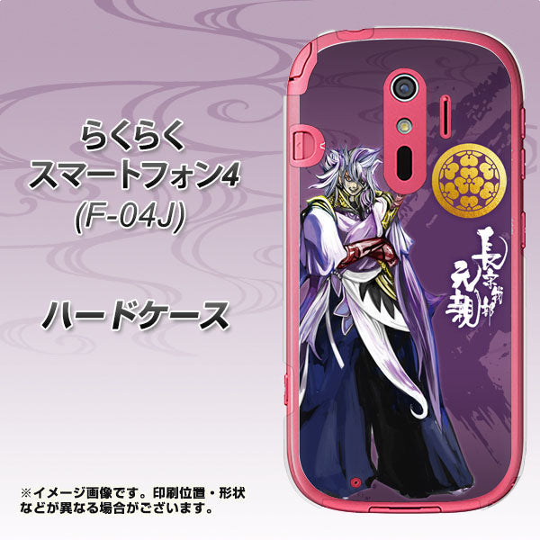 docomo らくらくスマートフォン4 F-04J 高画質仕上げ 背面印刷 ハードケース【AB805 長宗我部 元親 イラストと家紋】