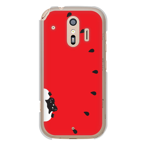 らくらくスマートフォン F-42A docomo 高画質仕上げ 背面印刷 ハードケース すいかをかじるネコ