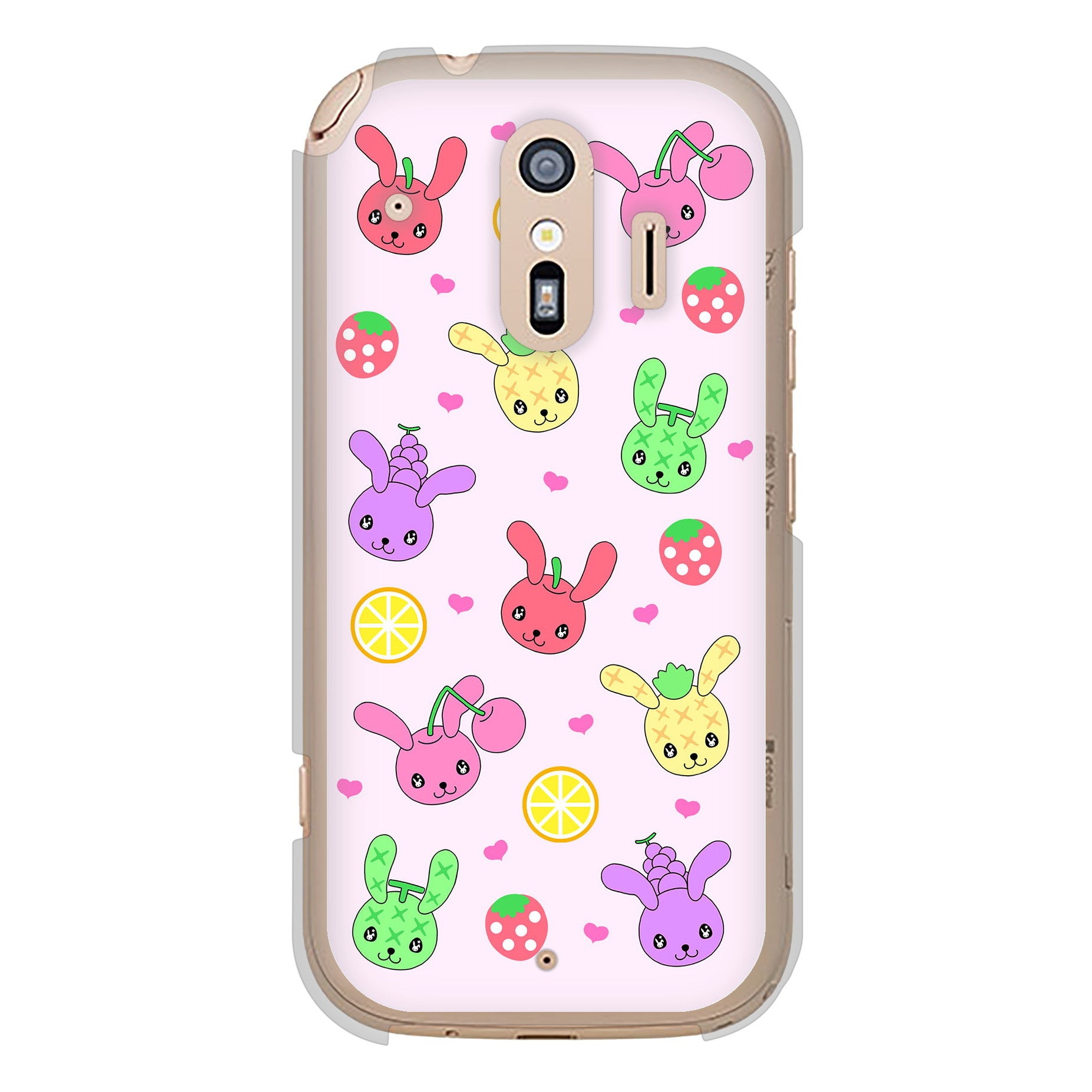 らくらくスマートフォン F-42A docomo 高画質仕上げ 背面印刷 ハードケース むかいあぐる フルーツうさぎのブルーラビッツ