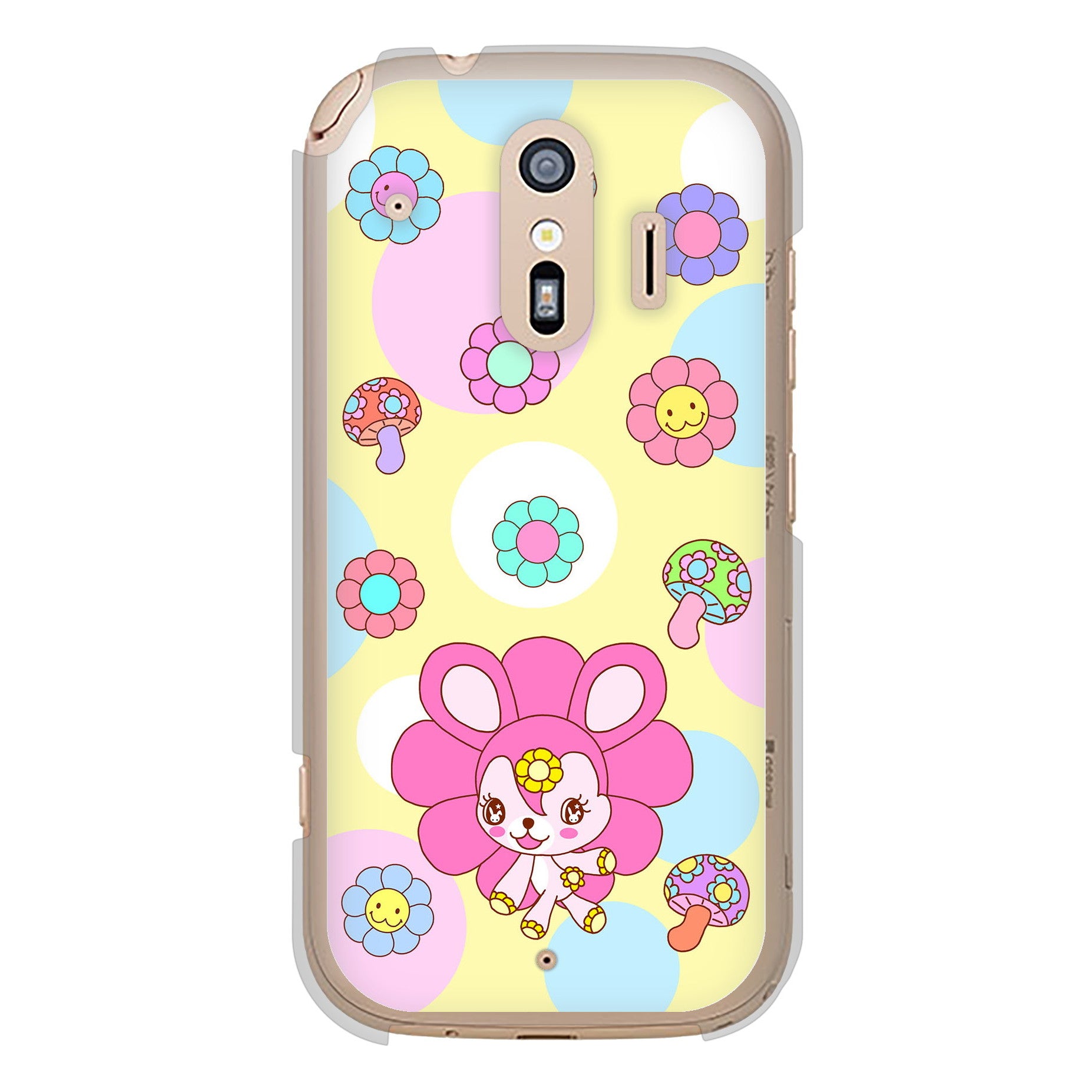 • らくらくスマートフォン F-42A docomo 高画質仕上げ 背面印刷 ハードケース むかいあぐる フラワーうさぎのフラッピョン