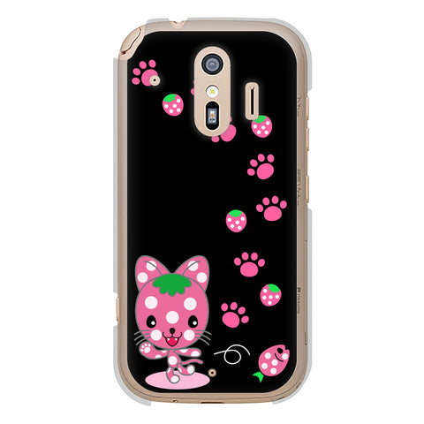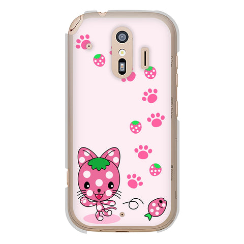 らくらくスマートフォン F-42A docomo 高画質仕上げ 背面印刷 ハードケース むかいあぐる イチゴ猫のにゃんベリー