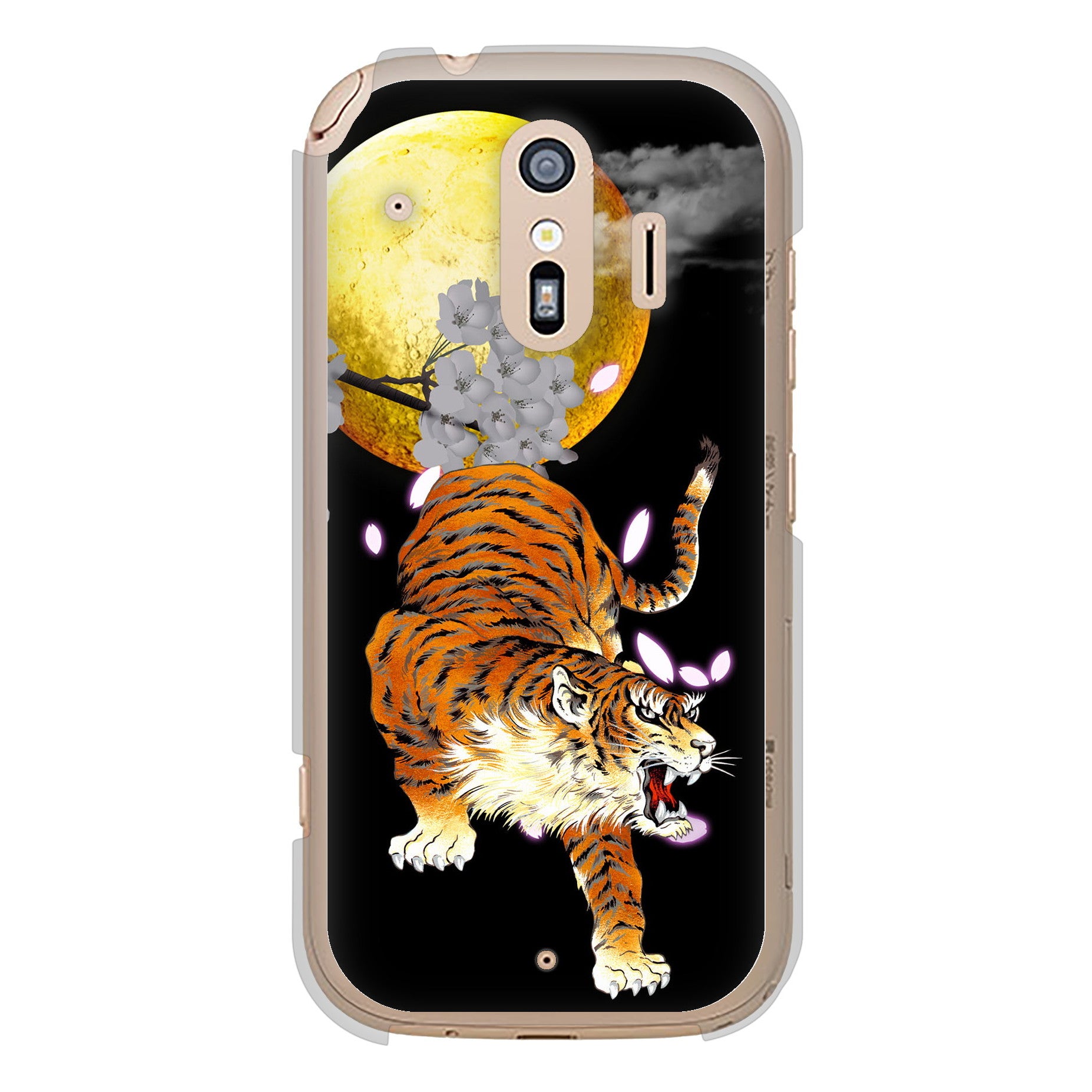 らくらくスマートフォン F-42A docomo 高画質仕上げ 背面印刷 ハードケース 月とタイガー
