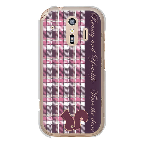 らくらくスマートフォン F-42A docomo 高画質仕上げ 背面印刷 ハードケース ピンクチェック