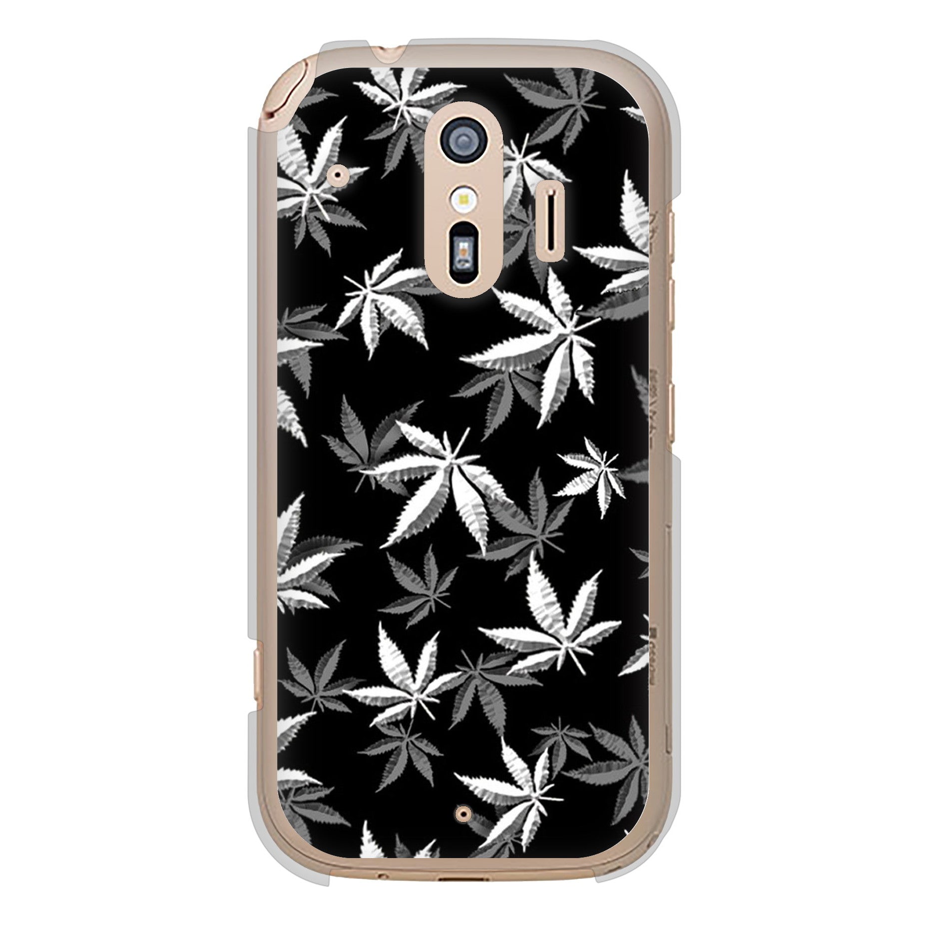 らくらくスマートフォン F-42A docomo 高画質仕上げ 背面印刷 ハードケース 【064 モノトーン大麻ブラック】