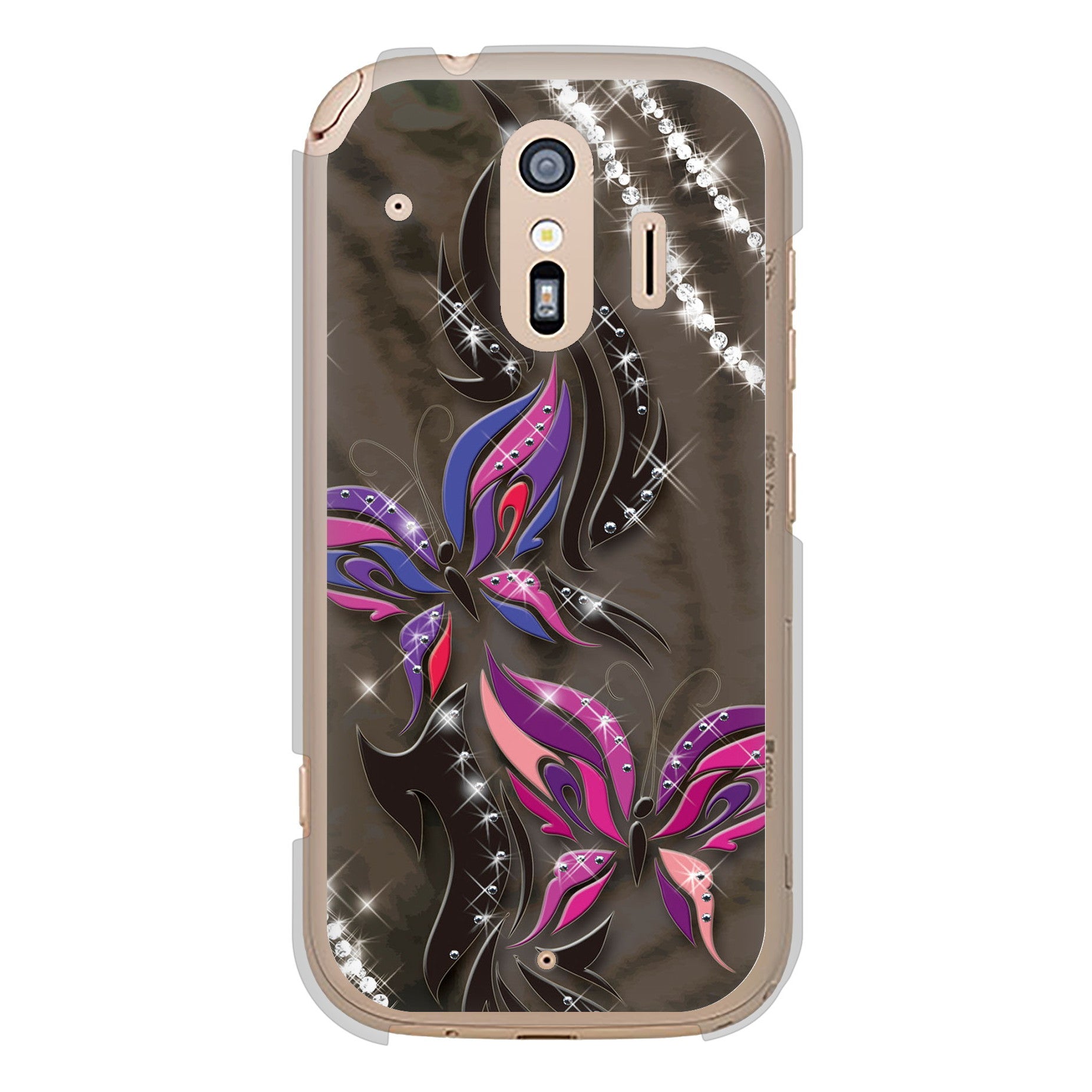 らくらくスマートフォン F-42A docomo 高画質仕上げ 背面印刷 ハードケース 【1164 キラめくストーンと蝶】