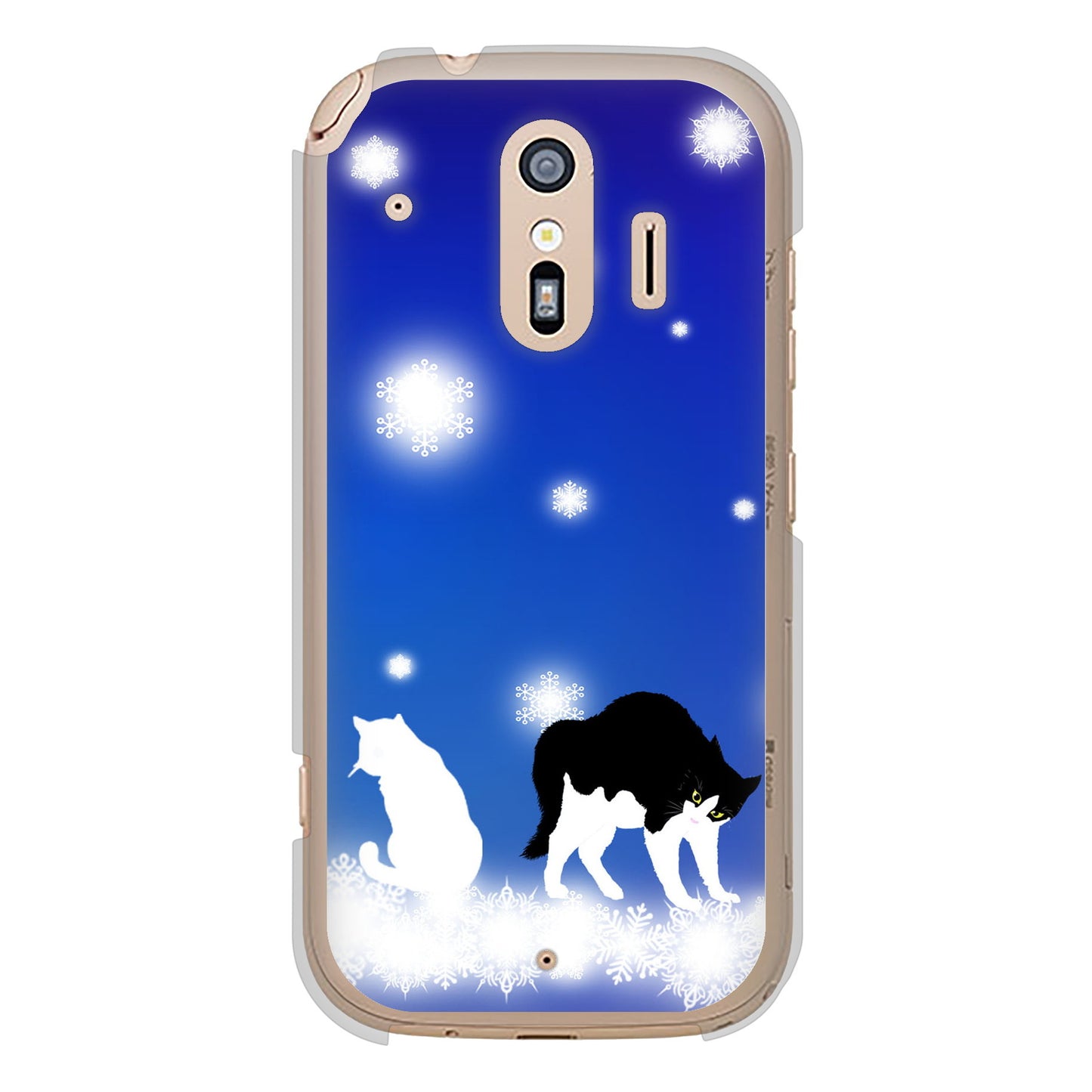 らくらくスマートフォン F-42A docomo 高画質仕上げ 背面印刷 ハードケース 【YJ335 雪の結晶 はちわれ】