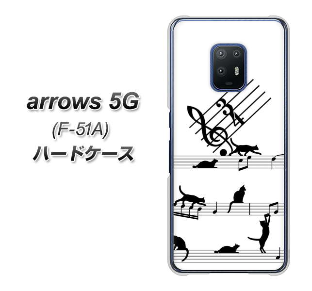 docomo アローズ5G F-51A 高画質仕上げ 背面印刷 ハードケース【1112 音符とじゃれるネコ2】