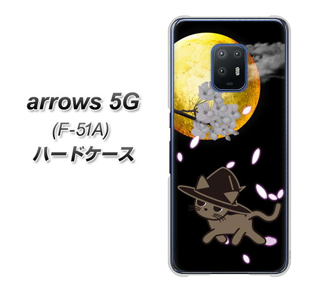 docomo アローズ5G F-51A 高画質仕上げ 背面印刷 ハードケース【1115 月夜に散歩するネコ】