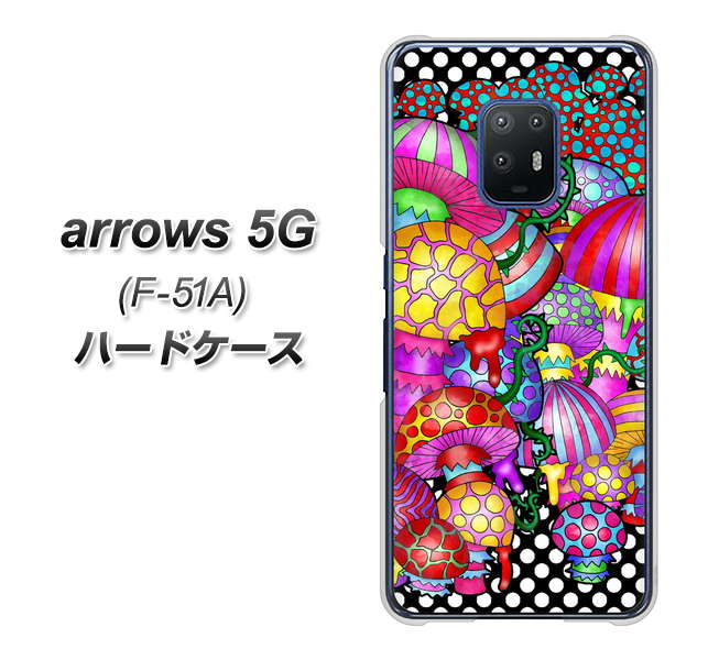 docomo アローズ5G F-51A 高画質仕上げ 背面印刷 ハードケース【AG807 きのこ(黒)】