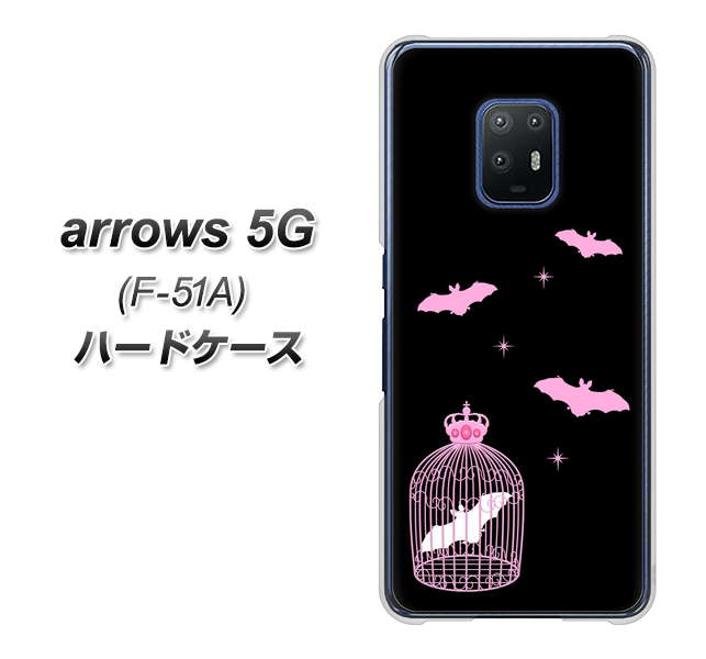 docomo アローズ5G F-51A 高画質仕上げ 背面印刷 ハードケース【AG809 こうもりの王冠鳥かご(黒×ピンク)】