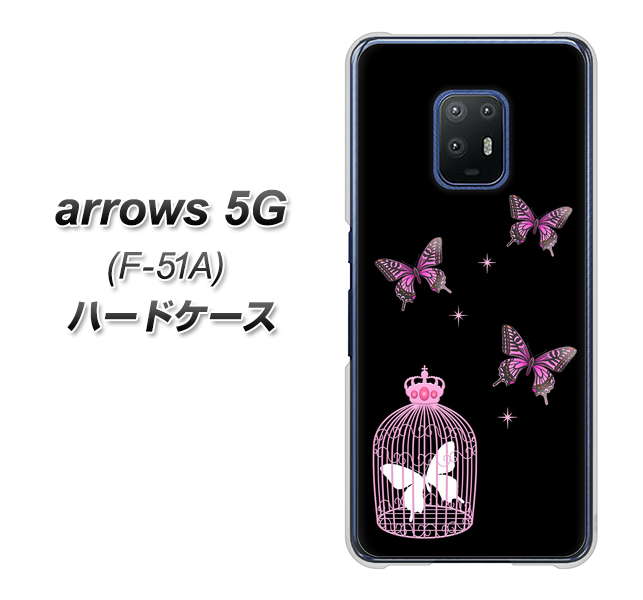 docomo アローズ5G F-51A 高画質仕上げ 背面印刷 ハードケース【AG811 蝶の王冠鳥かご(黒×ピンク)】