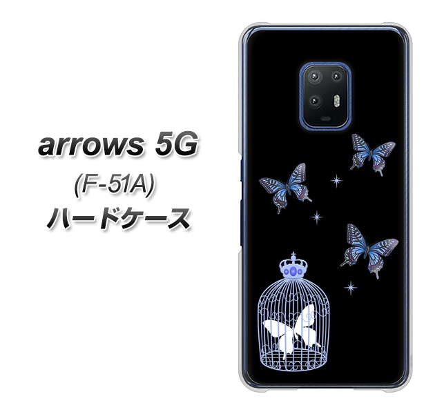 docomo アローズ5G F-51A 高画質仕上げ 背面印刷 ハードケース【AG812 蝶の王冠鳥かご(黒×青)】