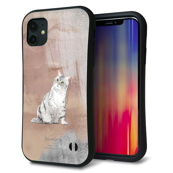 iPhone11 スマホケース 「SEA Grip」 グリップケース Sライン 【HA166 アメリカンショートヘア+くすみカラー】 UV印刷