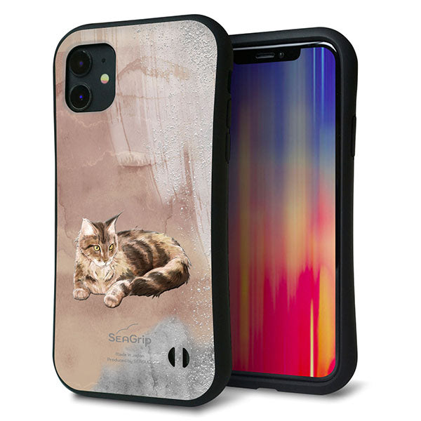 iPhone11 スマホケース 「SEA Grip」 グリップケース Sライン 【HA173 メインクーン+くすみカラー】 UV印刷