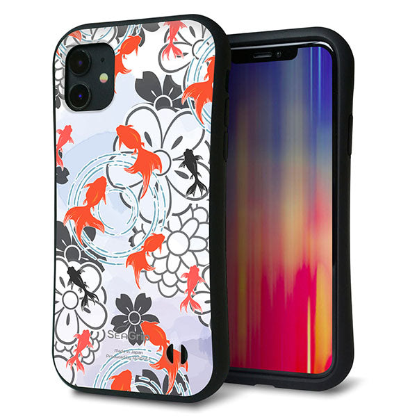 iPhone11 スマホケース 「SEA Grip」 グリップケース Sライン 【HA216 金魚 花柄 グレー 】 UV印刷