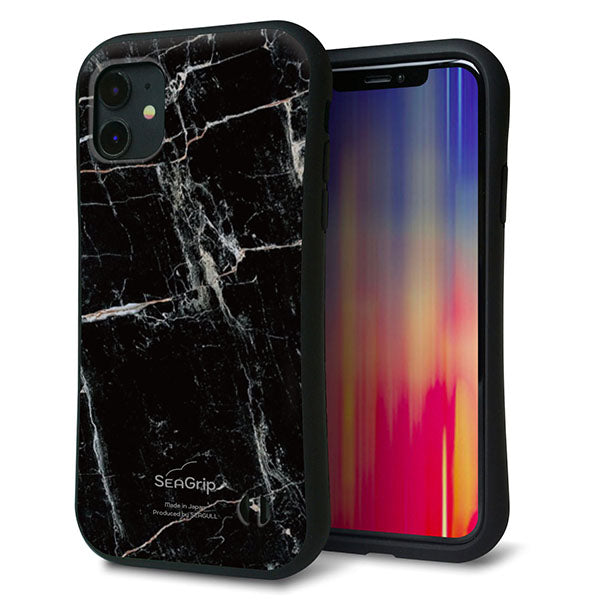 iPhone11 スマホケース 「SEA Grip」 グリップケース Sライン 【KM867 大理石BK】 UV印刷