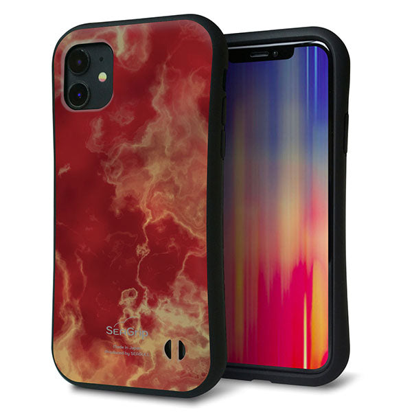 iPhone11 スマホケース 「SEA Grip」 グリップケース Sライン 【KM870 大理石RD】 UV印刷