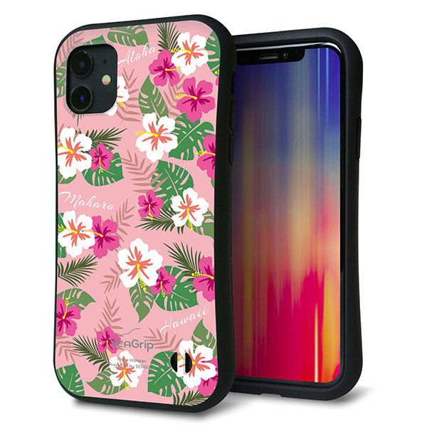 iPhone11 スマホケース 「SEA Grip」 グリップケース Sライン 【SC882 ハワイアンアロハレトロ ピンク】 UV印刷