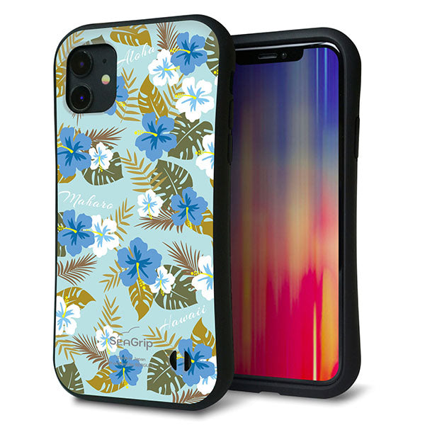 iPhone11 スマホケース 「SEA Grip」 グリップケース Sライン 【SC883 ハワイアンアロハレトロ ブルー】 UV印刷
