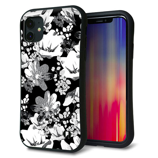 iPhone11 スマホケース 「SEA Grip」 グリップケース Sライン 【SC913 花柄モノトーン 02】 UV印刷