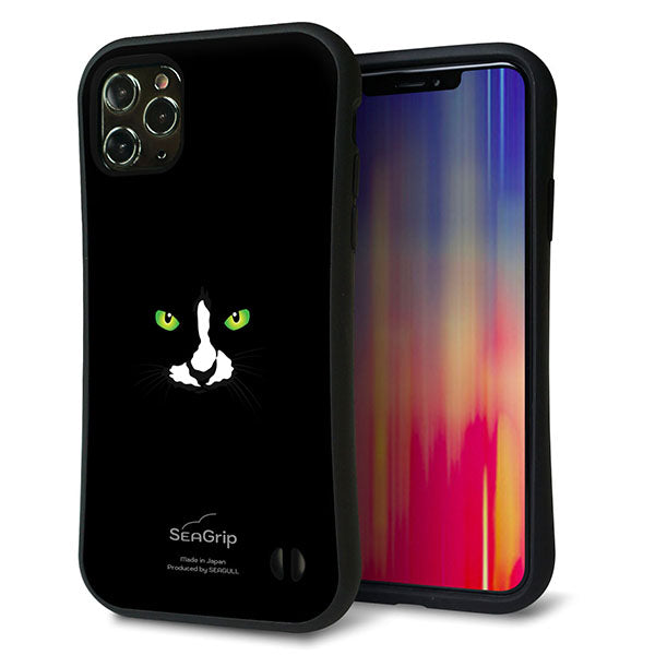 iPhone11 Pro Max スマホケース 「SEA Grip」 グリップケース Sライン 【398 黒ネコ】 UV印刷