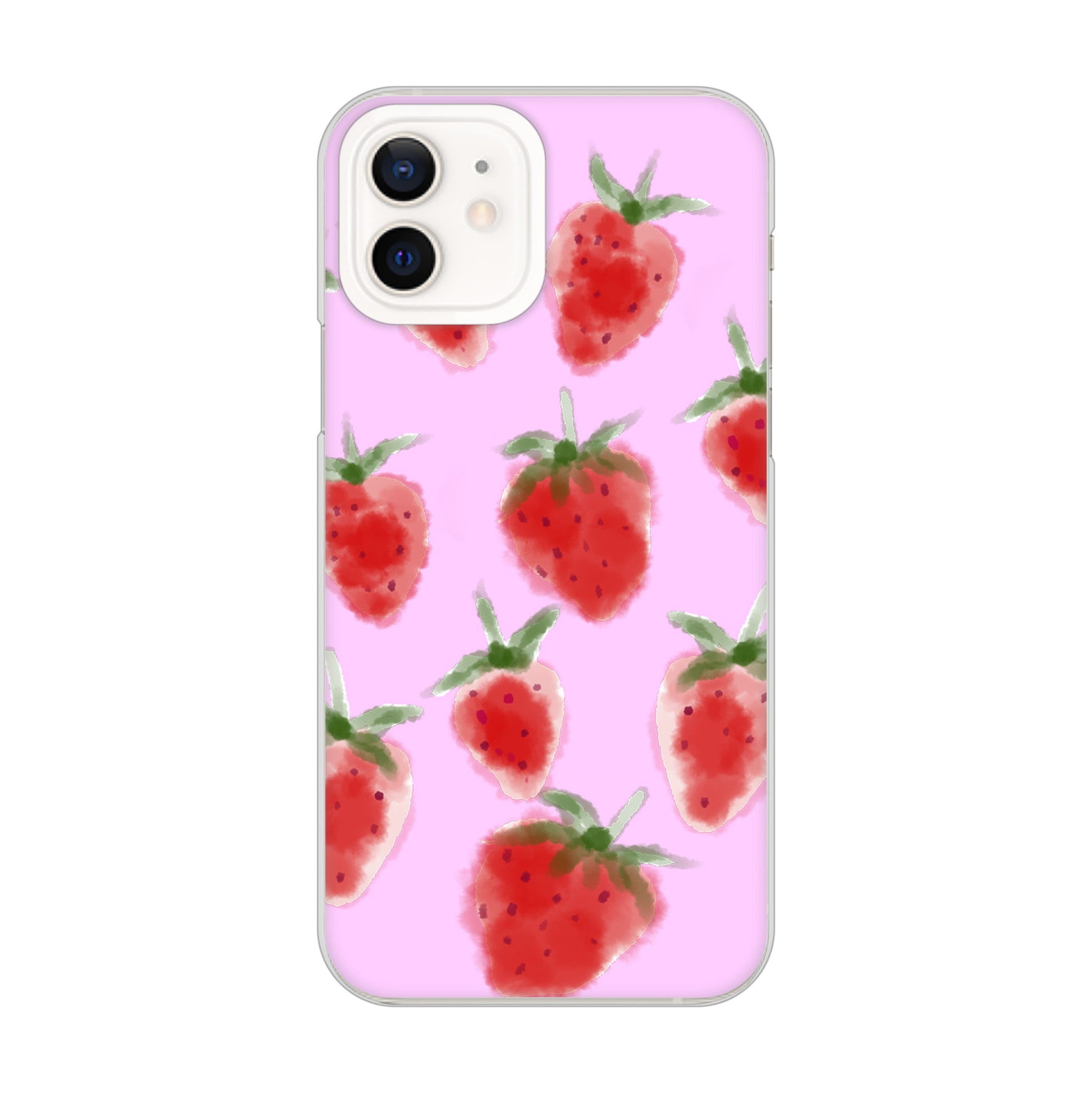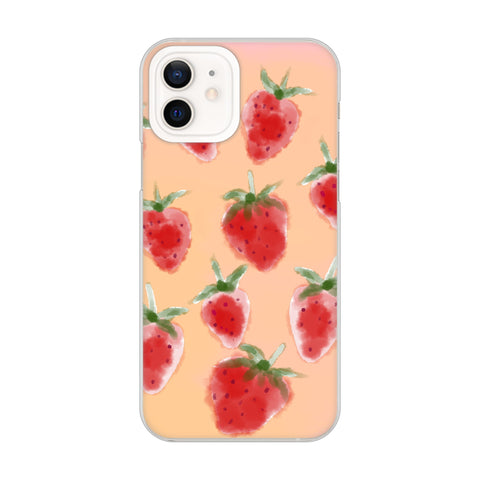 iPhone12 高画質仕上げ 背面印刷 ハードケース イチゴ 水彩