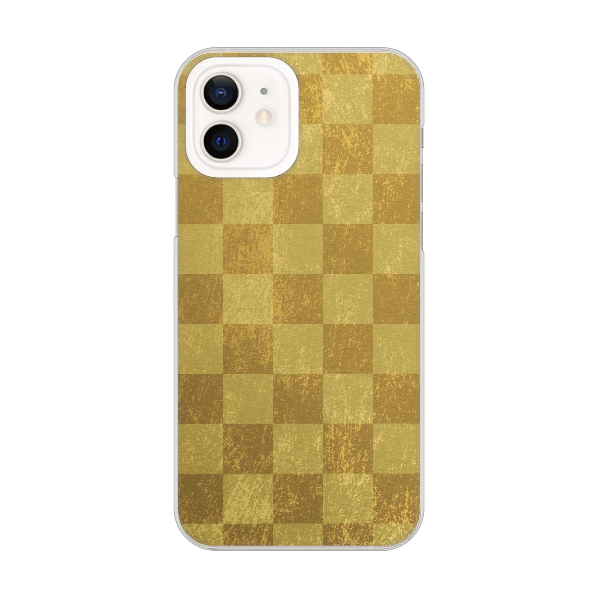 iPhone12 高画質仕上げ 背面印刷 ハードケース 【619 市松模様—金(骨董風に傷んだイメージ)】