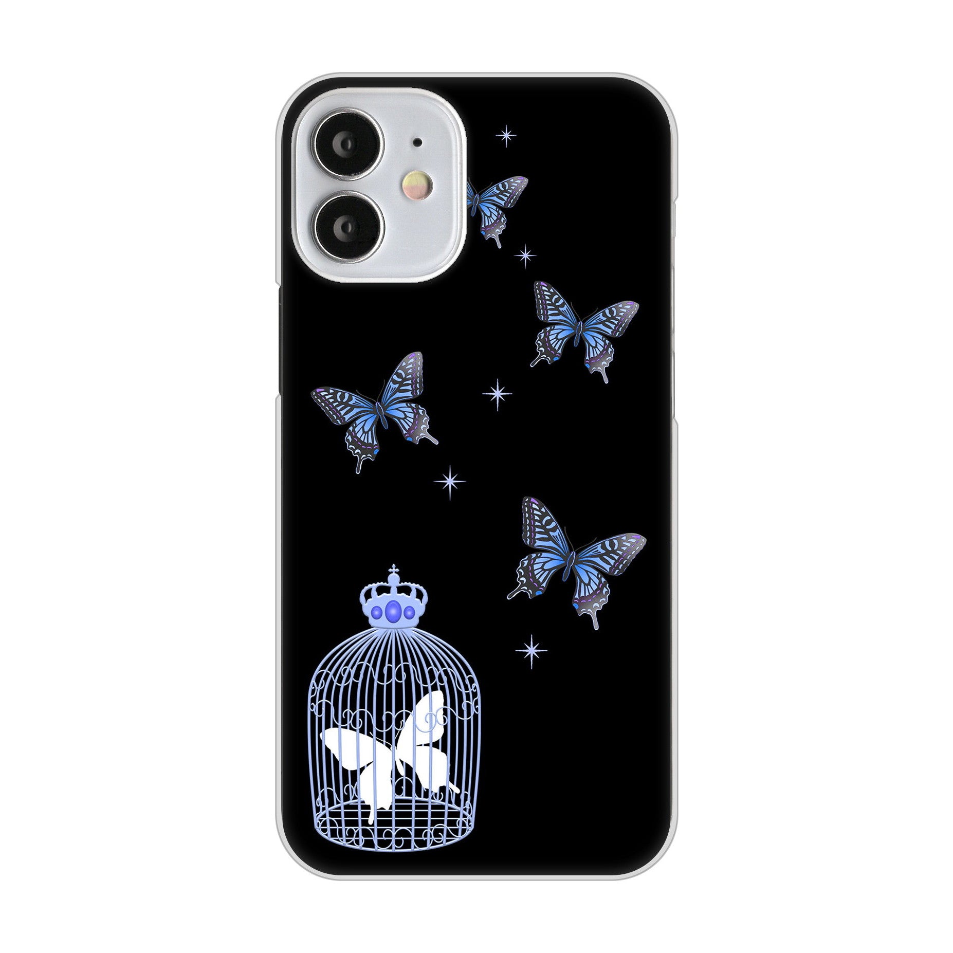 iPhone12 mini 高画質仕上げ 背面印刷 ハードケース むかいあぐる 蝶の王冠鳥かご