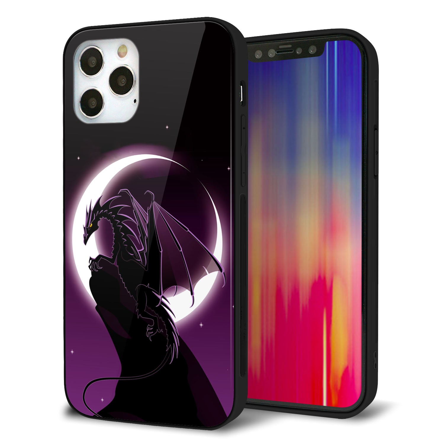 iPhone12 Pro 強化ガラス&TPUスマホケース ガラプリ【037 三日月とドラゴン】