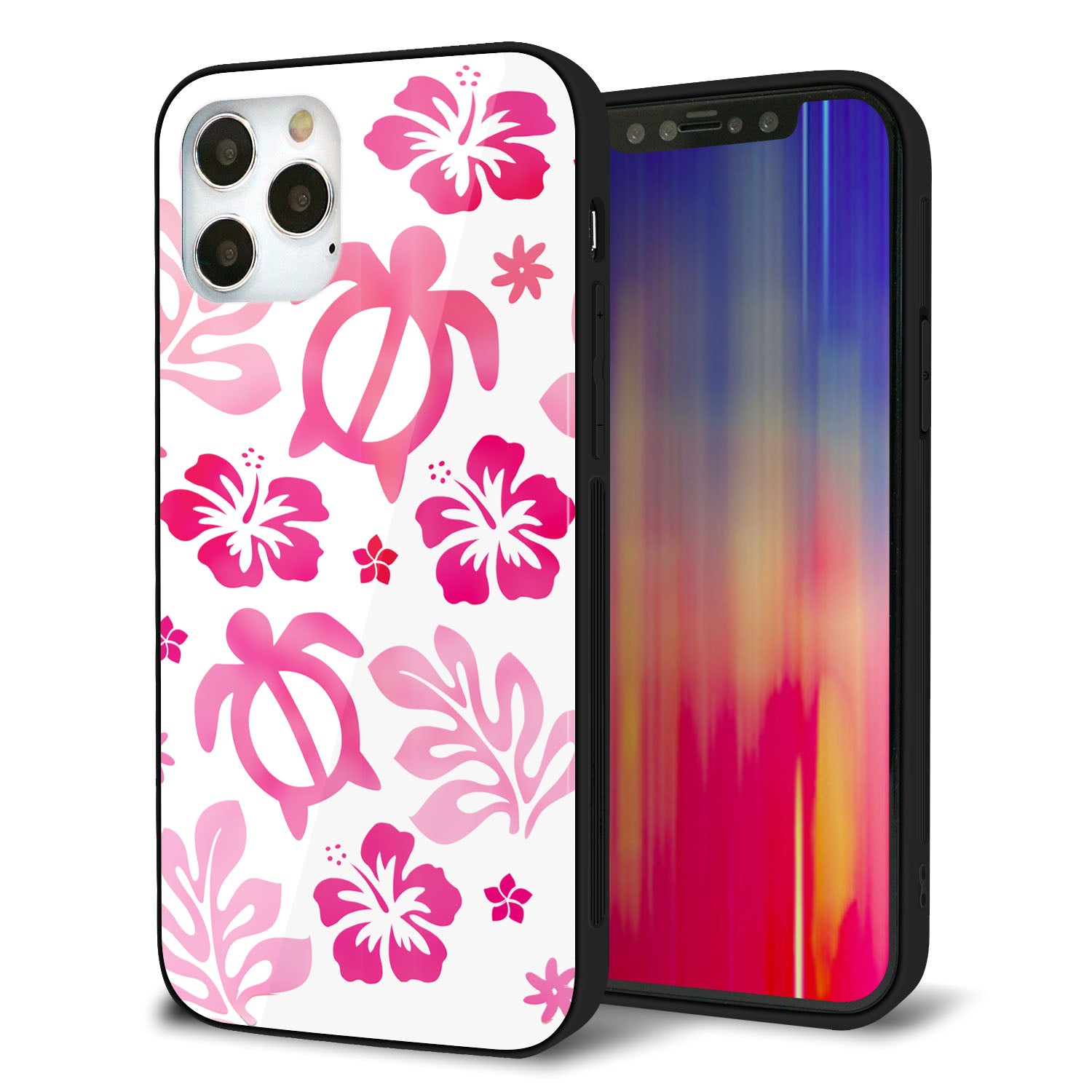 iPhone12 Pro 強化ガラス&TPUスマホケース ガラプリ【SC879 ハワイアンアロハホヌ(ピンク)】