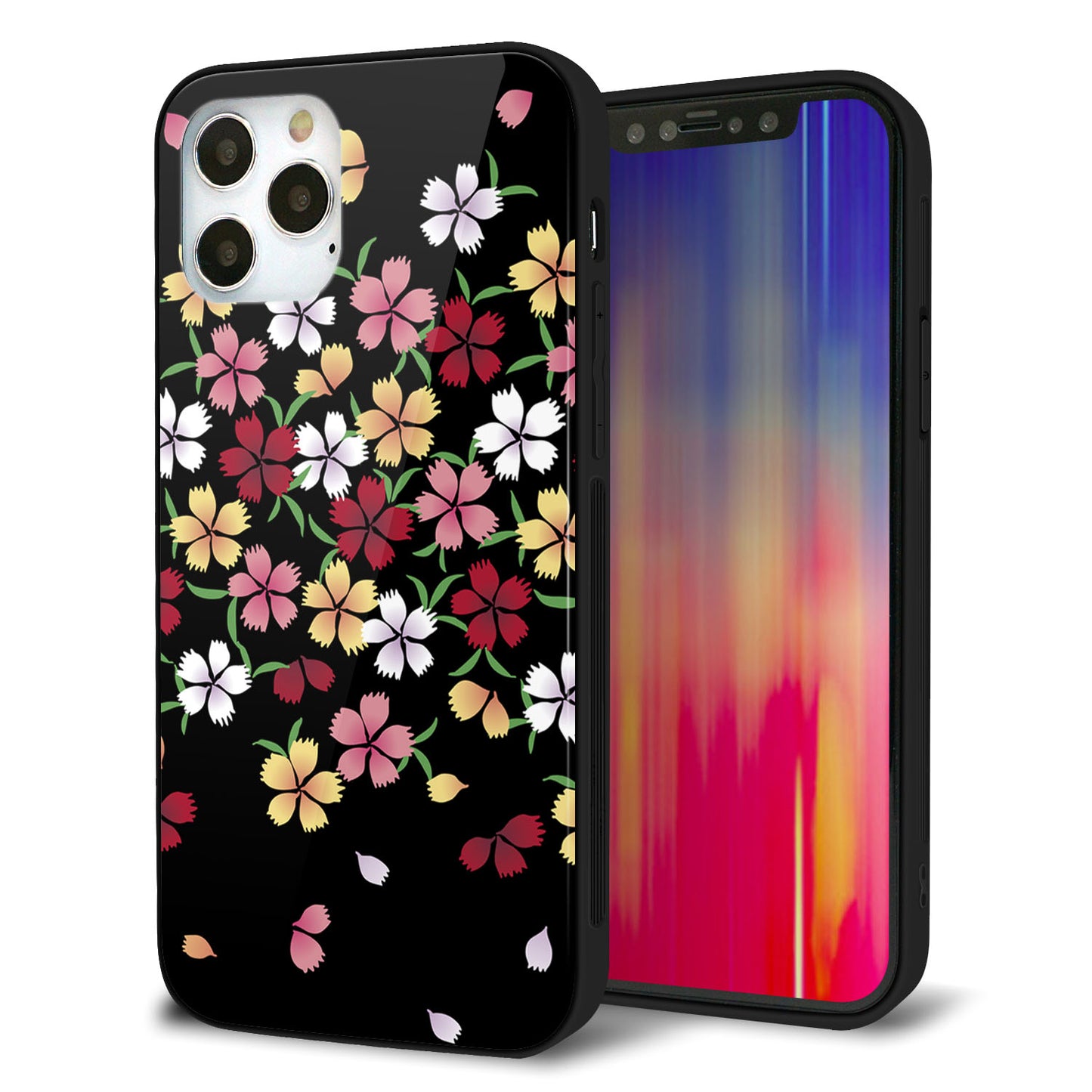 iPhone12 Pro 強化ガラス&TPUスマホケース ガラプリ【YJ323 和柄 なでしこ】