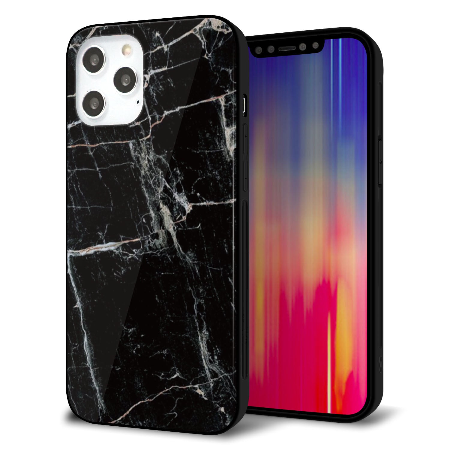 iPhone12 Pro Max 強化ガラス&TPUスマホケース ガラプリ【KM867 大理石BK】